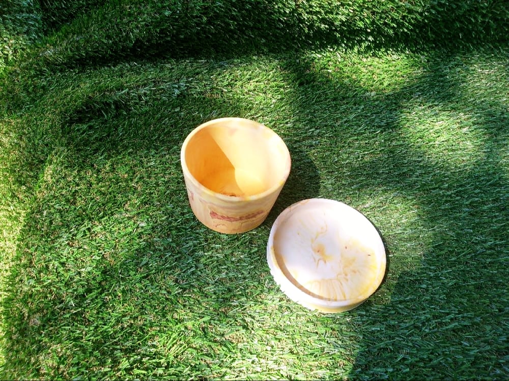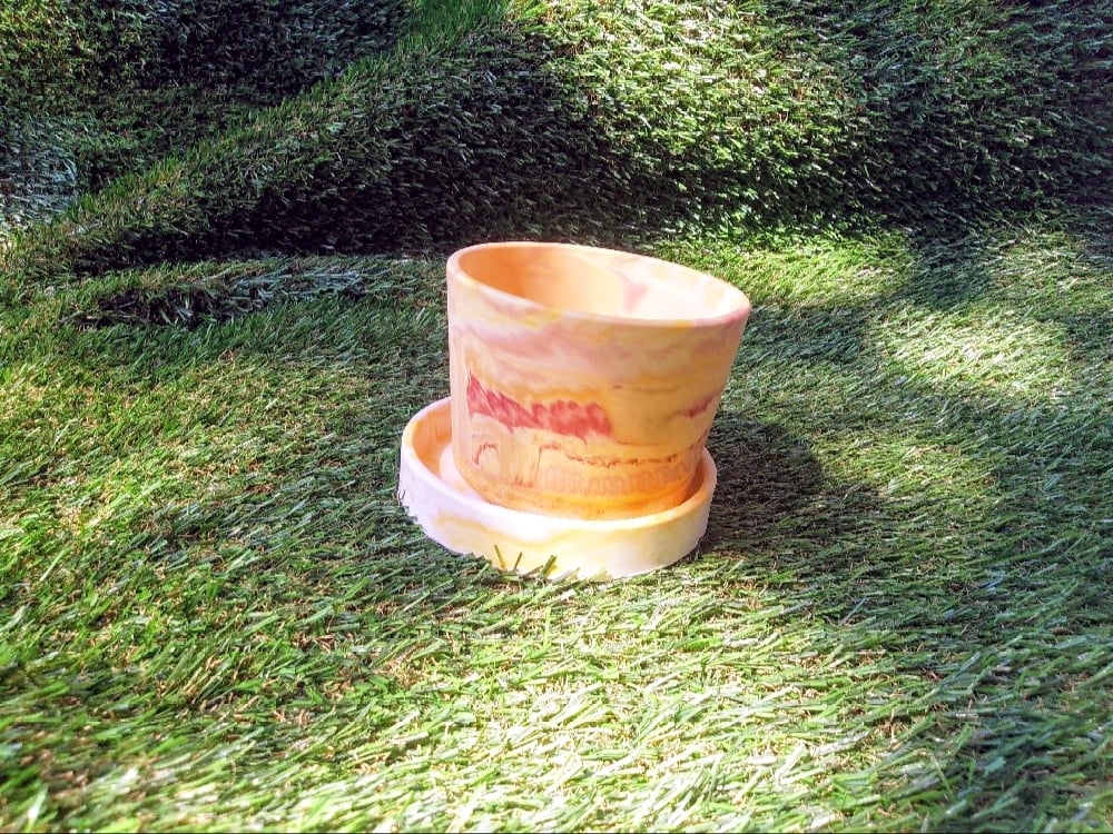 Αυτό το χειροποίητο σετ γλάστρας και πιάτου από πορσελάνη ψυχρής χύτευσης αποτελεί μια εκλεπτυσμένη πρόταση για τη διακόσμηση του χώρου σας. Με τη λεία, ματ υφή του και την απαλή φυσική χρωματική παλέτα, αποπνέει γαλήνη και minimal αισθητική.