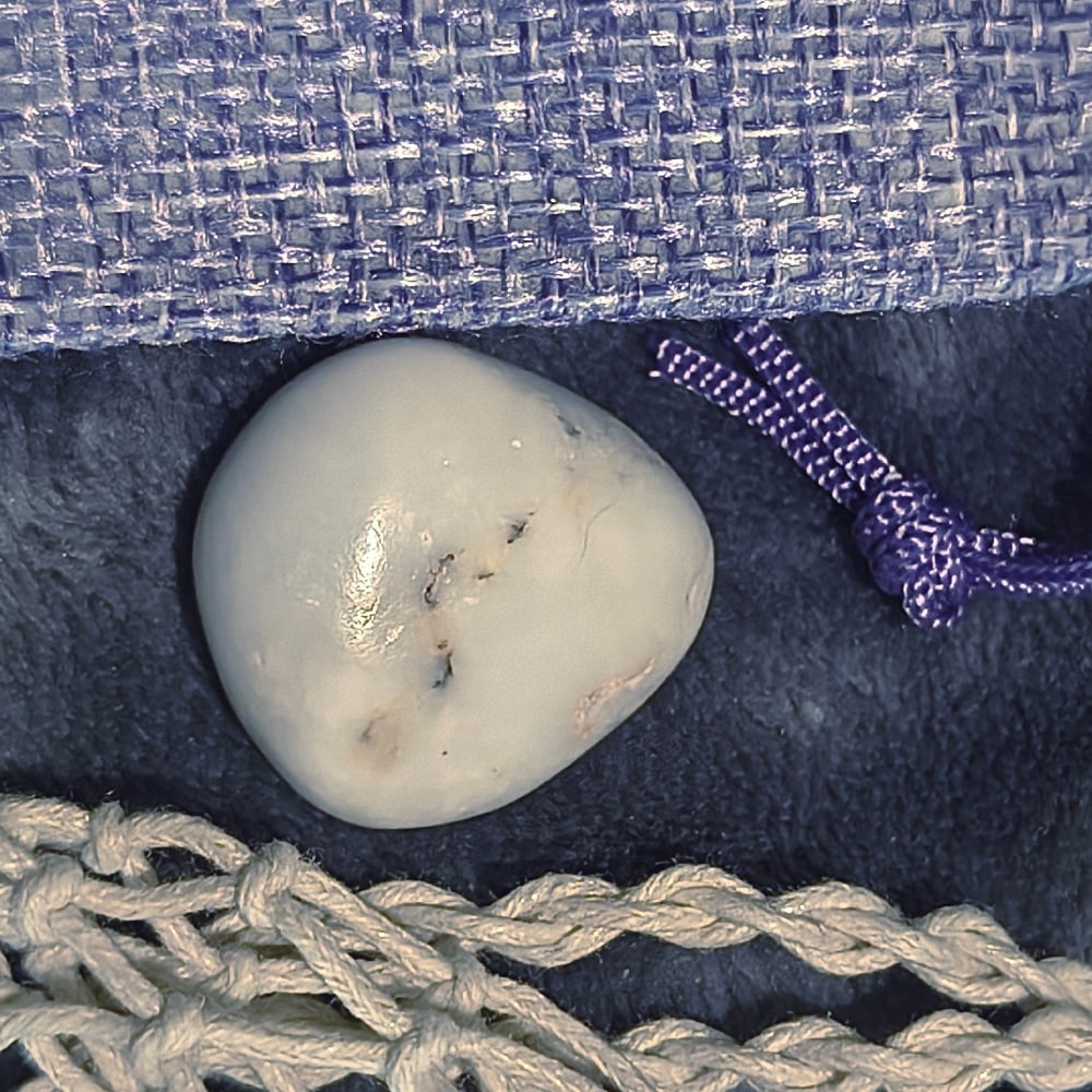 Ο γαλακτώδης χαλαζίας συνδέεται με γείωση, σταθερότητα και ήρεμη καθαρότητα σκέψης, ενώ τα σιδηρούχα εγκλείσματα ενισχύουν την αίσθηση προστασίας και εσωτερικής αντοχής.