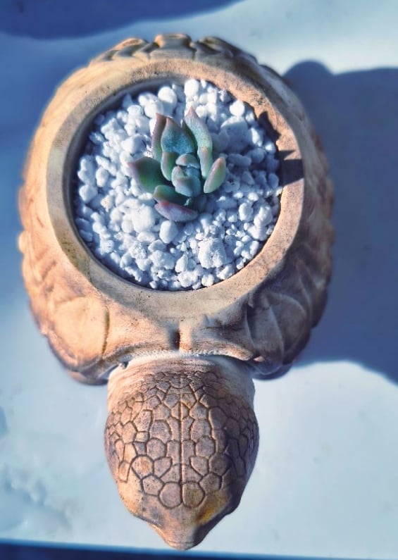 Το SlowDown Turtle είναι ένα χειροποίητο γλαστράκι, εμπνευσμένο από τη φιγούρα μιας Σόφης χελώνας , για να σου θυμίζει να πηγαίνεις πιο αργά ... Φτιαγμένο από το οργανικό μείγμα της Bella Mallu Art με ζεόλιθο, συνδυάζει φυσική αισθητική με στοχαστική ατμόσφαιρα, προσφέροντας στο φυτό σου ένα καταφύγιο που θυμίζει ηρεμία, εσωτερικότητα και σύνδεση με τις ανάγκες εαυτού .